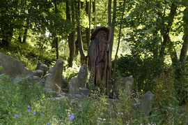Dieser Garten wird von einem aus Holz gearbeiteten Rübezahl bewacht: